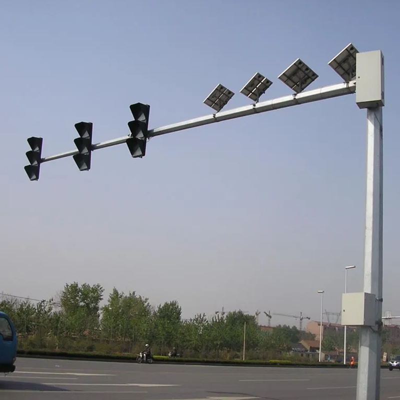 交通信号杆是交通信号中的重要组成部分,是道路交通信号灯的重要构架部分。信号灯杆按照结构分为八角信号灯杆,圆柱信号灯杆,圆锥信号灯杆。按照结构可以分为单悬臂信号灯杆,双悬臂信号灯杆,框架信号灯杆,一体化信号灯杆。交通信号杆分为:监控杆、监控立杆、监控支架、摄像机支架、摄像机杆、摄像机立杆、交通信号杆、交通标志杆、交通指示杆、道路灯、庭院灯、高杆灯、景观灯、太阳能灯单臂灯、双臂灯、组合灯、路跨、龙门架、人行灯杆、人行杆、红绿灯杆、电子屏专用立杆、旗杆、通讯杆、电力杆、电子警察专用立杆、草坪灯、地埋灯、水下灯、工矿灯、投光灯、泛光灯、壁灯、LED灯等,以及配套使用的各种光源配件,生产光控、时控开关等系列产品。